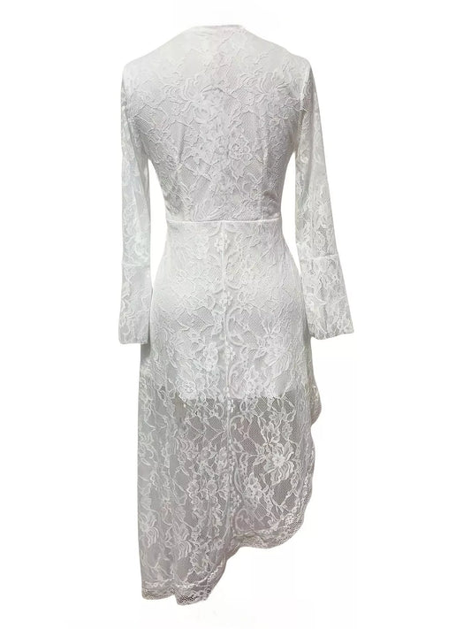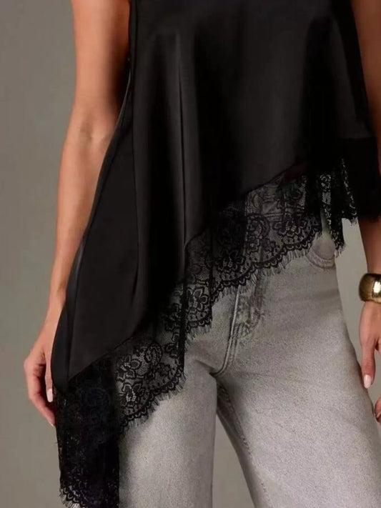 Asymmetrical Hem Lace V-Neck Cami Dress