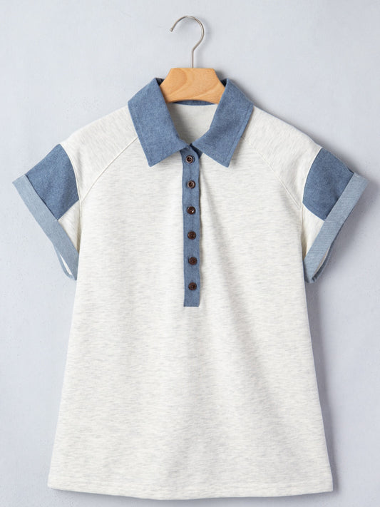 Denim Trim Button Detail Top
