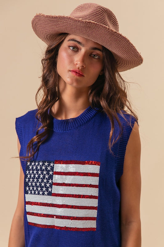 BiBi American Flag USA and Star Sequin Sweatshirt