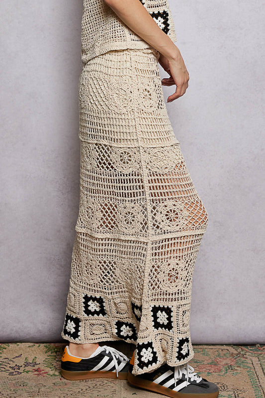 POL Floral Crochet Ruffled Waistband Maxi Skirt with Granny Square Weave