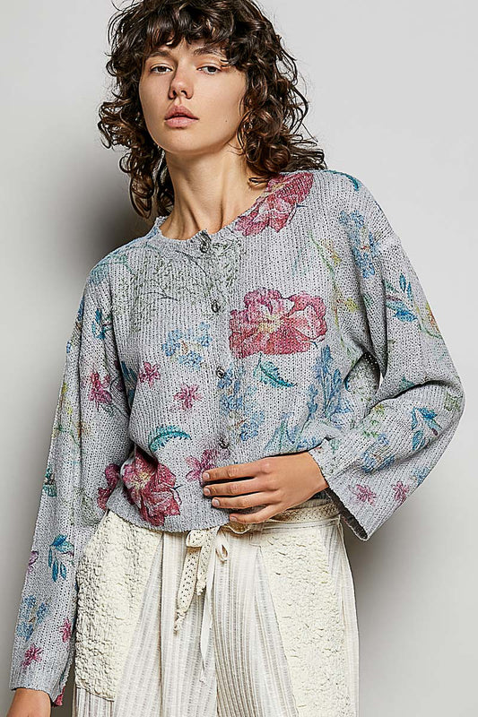 POL Floral Embroidered Button Down Long Sleeve Shirt