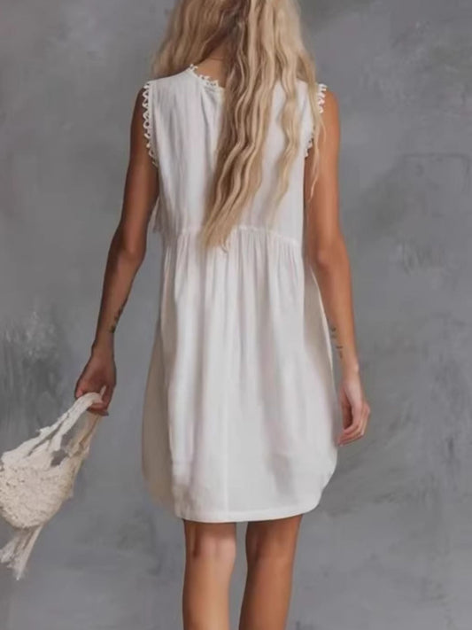 Full Size Lace Trimmed V-Neck Mini Dress Plus Size