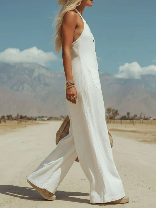Stripe Square Neck Sleeveless Smocked Bodice Wide Leg Jumpsuit