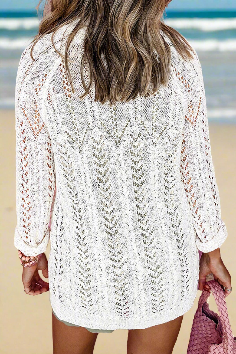 Openwork Open Front Long Sleeve Cardigan