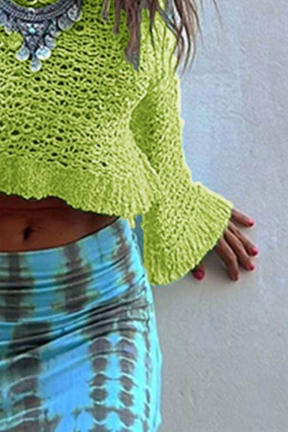 Round Neck Long Sleeve Knit Cover Up